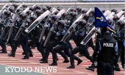 如何應(yīng)對(duì)球迷狂熱情緒?日本推出三大"必殺計(jì)" 2002年04月12日 16:20 ![]() 在舉行世界杯決賽的體育場進(jìn)行的大規(guī)模演練中手持透明盾牌的機(jī)動(dòng)隊(duì)員(“共同社”10日下午攝于橫濱市港北區(qū)的橫濱國際綜合競技場)