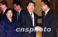 圖:朱镕基離京出訪土耳其等三國(guó) 2002年04月15日 14:40 ![]() 中國(guó)國(guó)務(wù)院總理朱镕基十五日離開北京,前往土耳其、埃及和肯尼亞進(jìn)行正式訪問。國(guó)務(wù)院副總理吳邦國(guó)等在北京人民大會(huì)堂送行。中新社記者 毛建軍 攝
