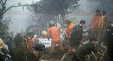圖:國(guó)航客機(jī)在韓國(guó)墜毀 韓國(guó)方面搶救生還者 2002年04月15日 16:03 ![]() 中國(guó)國(guó)際航空公司一架波音七六七型飛機(jī)十五日從北京起飛于韓國(guó)墜毀。圖為韓國(guó)救援人員在墜機(jī)現(xiàn)場(chǎng)進(jìn)行搶救工作。法新圖