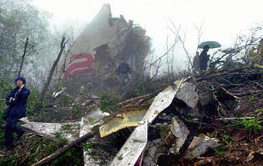 圖:失事飛機(jī)部分殘骸上依稀可見(jiàn)國(guó)航標(biāo)志 2002年04月15日 16:10 ![]() 中國(guó)國(guó)際航空公司一架波音七六七型飛機(jī)十五日從北京起飛于韓國(guó)墜毀。圖為失事飛機(jī)墜落爆炸后的部分殘骸上依稀可見(jiàn)國(guó)航標(biāo)志。法新圖