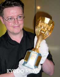 第一代世界杯冠軍獎(jiǎng)杯“大力神杯”到達(dá)日本 2002年04月26日 11:12 ![]() 英國(guó)首次拿到國(guó)外展出的第一座足球大力神獎(jiǎng)杯復(fù)制品24日由英格蘭代表帶到了英格蘭隊(duì)集訓(xùn)地—兵庫(kù)縣津名町(淡路島)。 中新網(wǎng)東京4月26日消息:英國(guó)首次運(yùn)往國(guó)外展出的第一代世界杯冠軍獎(jiǎng)杯“大力神杯”(復(fù)制品)日前到達(dá)英格蘭國(guó)家隊(duì)進(jìn)行集訓(xùn)兵庫(kù)縣津名町(淡路島)。 據(jù)“共同社”報(bào)道,該展品將在27日開(kāi)始的英格蘭足球博覽館藏品館中和大家見(jiàn)面。由于展品要運(yùn)到町內(nèi)游樂(lè)園中的展示會(huì)場(chǎng)內(nèi),神戶海關(guān)職員還進(jìn)行了通關(guān)檢查,復(fù)制的大力神杯放在玻璃罩中。 該大力神杯高約35厘米,重約4公斤,為金色女神像。其大小與重量和真品相同,是在1966年英格蘭第一次奪得大力神杯后制造的。為了防盜,真品被放到了保險(xiǎn)箱內(nèi),在一般正式場(chǎng)合均使用替代品。 真正的大力神杯70年交給了三次奪冠的巴西隊(duì),1983年被盜熔化。現(xiàn)在的是第二座大力神杯。