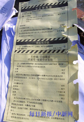 組圖:搜尋船只已經(jīng)打撈出了部分墜海飛機(jī)物品 2002年05月08日 23:54 ![]() 事故現(xiàn)場(chǎng)打撈上來的航海日志