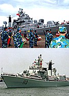 中國艦艇編隊(duì)環(huán)球首航 2002年05月16日 08:30 ![]() 由“青島”號導(dǎo)彈驅(qū)逐艦和“太倉”號綜合補(bǔ)給艦組成的中國海軍艦艇編隊(duì),5月15日上午從青島軍港啟程,首次進(jìn)行環(huán)球航行。張全躍 攝