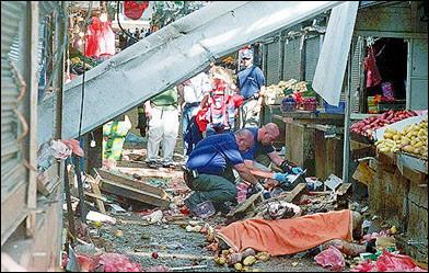 圖:以色列內(nèi)坦亞爆炸3人死亡50多人受傷 2002年05月20日 11:37 ![]() 一名喬裝成以色列士兵的巴勒斯坦自殺炸彈客,十九日在以色列海濱城鎮(zhèn)內(nèi)坦亞發(fā)動(dòng)爆炸攻擊,炸死自己及另外兩人,并傷及五十多人。(中新網(wǎng)圖)