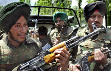 圖:印總理巡視克什米爾 士兵進行安全巡視 2002年05月23日 16:33 印度總理瓦杰帕伊5月22日來到克什米爾邊境地區(qū)進行視察,并向守衛(wèi)在那里的士兵發(fā)表演講。圖為印度軍隊士兵進行安全巡視。法新供中新