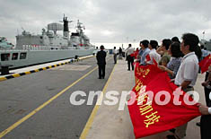 中新社北京五月二十三日電新加坡消息:今日上午十點(diǎn),美麗的“花園島國”新加坡,披上節(jié)日盛裝,迎來了中國人民海軍第一支艦艇編隊(duì)——環(huán)球航行訪問艦艇編隊(duì)。 新加坡海軍在樟宜港為中國艦艇編隊(duì)的到來舉行了隆重?zé)崃业臍g迎儀式,新加坡海軍艦隊(duì)副司令陳凱賀(TAN KAI HOE)上校和中國駐新大使張九桓、中資機(jī)構(gòu)、留學(xué)生及新各界人士到碼頭迎接。歡迎人群中拉起了“熱烈歡迎中國海軍艦艇編隊(duì)訪問新加坡”的巨幅標(biāo)語,上百面中國國旗在歡迎人群中揮舞成一片;中國使館女青年向總指揮丁一平獻(xiàn)花,陳凱賀上校致歡迎詞,丁一平將軍作了簡短講話并與張九恒大使、陳凱賀上校共同接受了記者的采訪。 丁一平將軍在接受記者采訪時(shí)說,這是中國海軍艦艇編隊(duì)首次訪問新加坡,作為中國人民和中國軍隊(duì)的友好使者,我們五百零六名官兵都感到非常高興。這次訪問,對(duì)加深兩國人民和軍隊(duì)之間的相互了解、增加信任、擴(kuò)大交流,發(fā)展友誼,進(jìn)一步促進(jìn)兩國人民、軍隊(duì)、特別是促進(jìn)兩國海軍關(guān)系的發(fā)展,有著非常重要的意義。訪問期間,我們的官兵將親身感受新加坡人民和軍隊(duì)的友好情誼,同樣,新加坡人民和軍隊(duì)也將通過中國海軍,更多地了解到中國人民和中國軍隊(duì)。 新海軍艦隊(duì)副司令陳凱賀告訴記者,新海軍十分重視中新兩國海軍關(guān)系的發(fā)展,新海軍先后于九八、九九年分別派艦對(duì)上海和青島進(jìn)行了友好訪問。這次中國海軍艦艇編隊(duì)來新加坡訪問,是我們期待已久的事,我們?yōu)橹袊\姷膩碓L,精心安排了多方面的活動(dòng)。 據(jù)記者了解,訪問樟宜港,是中國海軍艦艇編隊(duì)此次環(huán)球航行訪問的第一站。該港位于新加坡北部,是新海軍最大的基地和海軍司令部所在地,港內(nèi)可?堪ê娇漳概炘趦(nèi)的多種艦船。中國艦艇編隊(duì)將在此訪問三天,訪問其間,相繼到港的還有泰國、德國軍艦。 歡迎儀式結(jié)束后,編隊(duì)總指揮丁一平在張九恒大使陪同下前往新國防部拜會(huì)了新海軍總長(司令)呂德耀少將。參加歡迎儀式的中國駐新使館人員、華人華僑及留學(xué)生代表百余人登艦參觀,并與官兵們進(jìn)行了親切交談。 當(dāng)日下午,出訪官兵參觀了新海軍基地設(shè)施和戰(zhàn)術(shù)訓(xùn)練中心、軍艦等。晚上,新海軍為中國艦艇編隊(duì)官兵舉行了歡迎宴會(huì),新海軍參謀長戴榮利準(zhǔn)將等高級(jí)官員出席。(完)
