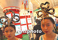 圖:飛天公關(guān)小姐推介"神舟"宇航飛船 2002年05月26日 11:08 ![]() 兩名扮作古代飛天仙女的甘肅公關(guān)小姐,在五月北京國際科技產(chǎn)業(yè)博覽會上,推介身后的中國“神舟”宇航飛船。賈國榮 攝