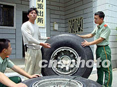 圖:福建漁民撈獲四只華航失事客機輪胎 2002年05月30日 19:09 ![]() 三十日下午二時許,“閩獅漁二三八五號”漁船打撈起一只華航失事客機輪胎,至此,福建石獅漁民已撈起失事客機的四只輪胎及多件飛機殘骸。現(xiàn)三只輪胎存放于石獅祥芝邊防派出所,隨時準備移交臺灣方面。徐承彬 攝