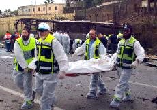 以色列汽車(chē)炸彈襲擊事件死亡人數(shù)上升至18人(圖) 2002年06月05日 15:47 ![]() 以色列汽車(chē)炸彈襲擊事件18人死亡,圖為工作人員清理現(xiàn)場(chǎng)。 中新網(wǎng)北京6月5日消息:以色列軍方電臺(tái)說(shuō),該國(guó)北部5日發(fā)生汽車(chē)炸彈爆炸事件,造成至少18人死亡,37人受傷,其中10人傷勢(shì)嚴(yán)重。 據(jù)法新社報(bào)道,這家電臺(tái)援引警方的消息說(shuō),16名以色列人在爆炸中喪生,其中包括多名士兵。 報(bào)道還補(bǔ)充說(shuō),另外還有兩具尸體身份尚未確定,可能是在車(chē)中的發(fā)動(dòng)襲擊者。 在以色列北部港口城市海法,這輛放置有炸彈的汽車(chē)在一輛以色列公共汽車(chē)后面爆炸,引起公車(chē)燃起大火。