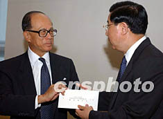 李嘉誠贊香港特區(qū)“問責制”新班子非常好(圖) 2002年06月26日 08:50 ![]() 香港首富、長江實業(yè)集團主席李嘉誠,6月25日在香港將一千萬港元支票交與中聯(lián)辦主任姜恩柱,以救濟今夏中國大陸遭受嚴重水災(zāi)的地區(qū)民眾。中新社記者 任晨鳴 攝