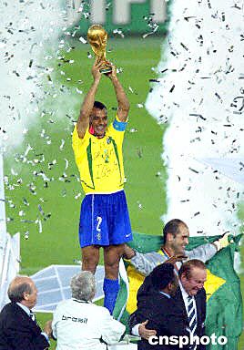 組圖:德國0:2巴西 卡福高舉大力神金杯 2002年06月30日 21:41 ![]() ![]() 6月30日晚,2002韓日世界杯決賽巴西隊(duì)VS德國隊(duì)的比賽已經(jīng)結(jié)束,最終巴西隊(duì)以2比0戰(zhàn)勝德國隊(duì),羅納爾多表現(xiàn)出色獨(dú)進(jìn)兩球。圖為巴西隊(duì)隊(duì)長(zhǎng)卡福高舉大力神金杯。
