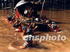 圖:廣東茂名二十萬(wàn)人受水災(zāi)海軍雨夜救人 2002年07月04日 18:10 ![]() 廣東茂名地區(qū)連降暴雨,二十萬(wàn)人受災(zāi),其中數(shù)千人受洪水圍困。南海艦隊(duì)數(shù)百名海軍陸戰(zhàn)隊(duì)官兵雨夜馳援,展開(kāi)搶險(xiǎn)救災(zāi)工作,安全轉(zhuǎn)移災(zāi)民一千多人。圖為官兵們?cè)诰茸o(hù)受災(zāi)群眾。作者:牛韓