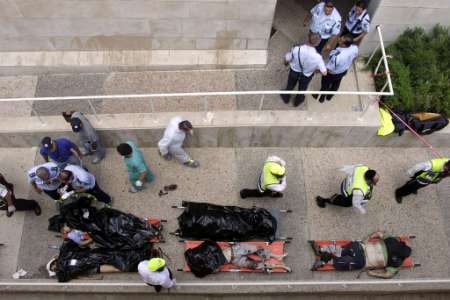 耶路撒冷大學(xué)爆炸六個外國人死亡 中國學(xué)生無恙 2002年08月01日 06:28 ![]() 中新網(wǎng)北京8月1日消息:以色列官員說,在耶路撒冷希伯來大學(xué)炸彈爆炸中喪生的七個人,有六個是外國國籍,包括最少一名美國及一名法國人。 事件中還有九十多人受傷。新華社說,有十多名中國留學(xué)生在這間大學(xué)就讀,他們?nèi)堪踩?/p> 本次是耶路撒冷在24小時內(nèi)發(fā)生的第二宗炸彈襲擊。伊斯蘭激進組織哈馬斯已承認負責(zé)。 耶路撒冷希伯來大學(xué)餐廳發(fā)生爆炸致7死85傷 中新網(wǎng)北京7月31日消息:據(jù)美聯(lián)社報道,耶路撒冷東部希伯來大學(xué)的一個餐廳31日午餐時間發(fā)生爆炸,造成7人死亡,85人受傷,其中14人重傷。 巴勒斯坦激進組織伊斯蘭抵抗運動哈馬斯宣布對此次爆炸事件負責(zé),并稱這是對以色列23日轟炸加沙居民樓進行的報復(fù)。 雖然以色列的各大學(xué)目前均已放假,但發(fā)生爆炸時仍有許多留校學(xué)生正在咖啡廳用午餐。 事發(fā)后,新華社記者與在該大學(xué)區(qū)讀書的幾名中國留學(xué)生取得了聯(lián)系。據(jù)他們介紹,由于學(xué)校放假,中國學(xué)生均離開了學(xué)校,在爆炸中沒有中國學(xué)生受傷。目前有十幾名中國留學(xué)生在該大學(xué)區(qū)讀書。 死傷的人員中大部分為18-30歲的學(xué)生,其中許多為外國學(xué)生。這是自以巴沖突爆發(fā)以來,在以色列校園內(nèi)發(fā)生的首起爆炸襲擊事件。 巴勒斯坦民族權(quán)利機構(gòu)事后發(fā)表聲明譴責(zé)爆炸事件。以色列總理沙龍取消了當(dāng)天的所有日程安排,預(yù)計以色列內(nèi)閣將召開會議。 美國總統(tǒng)布什強烈譴責(zé)本次襲擊。他呼吁巴勒斯坦民族權(quán)利機構(gòu)致力制止恐怖主義,并強調(diào)美國不會放棄推動中東實現(xiàn)和平。 在昨日,巴勒斯坦激進份子,在耶路撒冷市中心,發(fā)動自殺式襲擊,造成一死七傷。