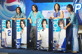 拍《流星花園》日久生情? F4言承旭傳鬧姐弟戀(圖) 2002年08月09日 09:21 ![]() F4言承旭(左1)被傳媒追問(wèn)他與柴姐的緋聞,他拒絕回應(yīng)! 中新網(wǎng)香港8月8日消息:言承旭與《流星花園》監(jiān)制柴智屏鬧姐弟戀?言承旭被問(wèn)起臉色一沉! 據(jù)此間新明日?qǐng)?bào)的報(bào)道說(shuō),F(xiàn)4言承旭憑“道明寺”一角走紅東南亞,傳媒與歌迷對(duì)於他的感情生活非常有興趣,有傳言指他喜歡同性,也有傳他與《流星花園》制作人兼經(jīng)理人柴智屏正在鬧“姐弟戀”! 前晚他在香港出席百事的廣告首播記者會(huì)后,傳媒追問(wèn)他與柴姐的緋聞,言承旭假裝聽不懂拒絕回應(yīng)! 他身旁的朱孝天則搞笑為他解圍,引來(lái)哄堂大笑!雖然F4都略懂廣東話,但記者訪問(wèn)時(shí)多以華語(yǔ)發(fā)問(wèn),朱孝天就充當(dāng)翻譯員。當(dāng)記者問(wèn)到言承旭與柴智屏的戀情時(shí),他面色一沉,朱孝天也不肯翻譯,只是拍了一下他的膝蓋說(shuō):“我想,是時(shí)候我們公開了!” 言承旭不禁失笑又假裝聽不明白,并轉(zhuǎn)身向工作人員示意要求解圍,最后工作人員表示與廣告宣傳無(wú)關(guān),拒絕回應(yīng)。