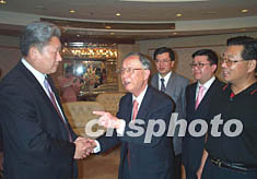 香港知名人士林百欣先生十三日在汕頭捐資四千萬人民幣,支持汕頭市圖書館新館配套設(shè)施建設(shè)。近二十年來,林百欣在汕頭以及國內(nèi)其它地方捐贈社會公益事業(yè)的金額累計已達(dá)六億元人民幣。圖為汕頭市委書記李統(tǒng)書(左一)、市長李春洪(右一)當(dāng)面感謝林百欣先生(左二)的義舉。作者:王惠存