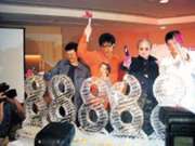 蘇永康帶笑謝歌迷:我回來了(附圖) 2002年08月14日 10:26 ![]() 歌迷的打氣信給康仔很大的鼓勵 ![]() 蘇永康主持破冰儀式寓意新開始 中新網(wǎng)香港8月14日消息:包含“重新出發(fā)”與“新專輯慶功”雙重意義的蘇永康“SUPER NICE”記者會13日下午在遠東飯店舉行。 據(jù)明報報道,康仔在記者會上神情顯得輕松自在。蘇永康說,這段接受勒戒的日子里,他深深感受到家人、朋友、歌迷帶給他的愛與關(guān)懷,這是他三十多年首次如此深切的體驗。 唱片公司特別為康仔安排“消災(zāi)解厄儀式”,希望他遠離災(zāi)難、重新出發(fā)。該儀式先是過火盆,再來是噴柚子葉水,最后吃豬腳面線,另外蘇永康也擊破一座“88888”的冰雕,象征著他的唱片專輯賣得非常成功,突破8萬8千888張。整個活動尷尬的氣氛被“慶功”的意味給沖消掉了。(林佳宏)
