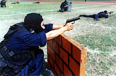 圖為防暴警察處置突發(fā)事件模擬實戰(zhàn)射擊表演
