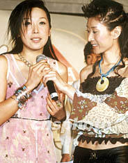 日前,2002MTV-萊卡風(fēng)尚頒獎大典在北京王府飯店舉行。圖為獲獎歌手孫悅(左)和著名節(jié)目主持人李霞在發(fā)布會上。錢興強 攝
