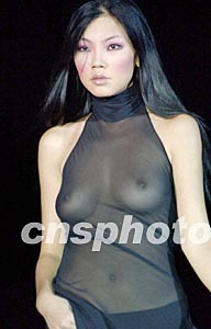 組圖:精品時(shí)裝展示會(huì)上模特展示“透視裝”