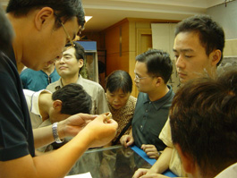 此人向記者透露,自己是昨天特意從北京趕來(lái)參加此次拍賣(mài)會(huì)的并自稱(chēng)是周懷民的親戚。他認(rèn)為以周懷民在北方的名氣,這樣的價(jià)格很合理,“就是這樣的價(jià)格,我看上升空間也很大”。他躊躇滿(mǎn)志的表示,這次拍賣(mài)會(huì)上書(shū)畫(huà)的作者在北方都相當(dāng)有知名度,這次來(lái)還想多拍幾件字畫(huà)回去。另一副馮大中作老虎寫(xiě)意圖起拍價(jià)為二千一百元,一路攀升后以高于起拍價(jià)近十倍價(jià)格即二萬(wàn)二千元被一位競(jìng)拍者買(mǎi)走,引起現(xiàn)場(chǎng)一片嘩然。隨后該競(jìng)拍者便離開(kāi)了拍賣(mài)會(huì)場(chǎng)。