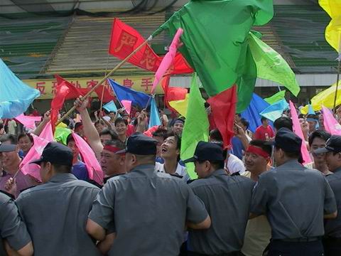 今天上午,福建省體育中心場(chǎng)內(nèi)出現(xiàn)了數(shù)百名“球迷”,在一片“打倒黑哨”的口號(hào)聲,“綠茵場(chǎng)”內(nèi)亂成一團(tuán),摔礦泉水瓶,砸酒瓶,甚至趁機(jī)放火,一時(shí)“狼煙四起”。隨著“事態(tài)”的發(fā)展,福建省公安機(jī)關(guān)和武警部隊(duì)的各主要警種陸續(xù)聞?dòng)嵹s來(lái)。