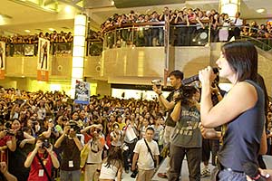 仔仔周渝民2月底來新,在本地新達城展開6000歌迷馬拉松簽名時,當(dāng)時萬人包圍仔仔,出動50名保安護駕,而仔仔所收到的禮物多達40幾袋,場面非常轟動!