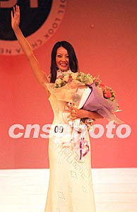 八日晚,2002新絲路北京模特大賽決賽在北京俊峰華亭舉行,九號女選手樊悅歌奪得女冠軍。作者:盛佳鵬