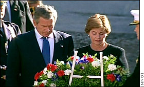 布什在世貿(mào)遺址敬獻(xiàn)花圈 將發(fā)表全國講話(圖)
