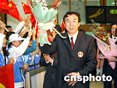 中新社釜山九月二十六日電(記者 王健)前來參加釜山亞運(yùn)會的中國體育代表團(tuán)官員及部分運(yùn)動隊(duì),今晚在國家體育總局局長袁偉民的率領(lǐng)下,乘坐民航包機(jī)抵達(dá)韓國釜山。