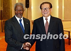 這是安南第五次訪華,他在會(huì)見中感謝中國對(duì)聯(lián)合國工作的支持。