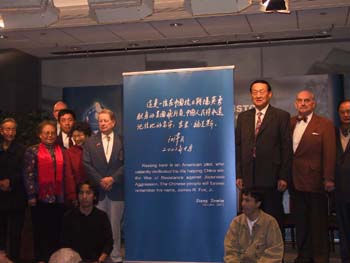 江澤民主席的題詞是:這是一位在中國抗日戰(zhàn)場英勇獻(xiàn)身的美國飛行員,中國人民將永遠(yuǎn)記住他的名字:吉米.?怂埂