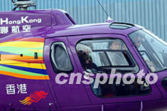 香港演藝界“大哥”成龍,10月21日身著唐裝乘坐直升機(jī)出席在啟德舊機(jī)場(chǎng)舉行的《千機(jī)變》電影記者會(huì),為英皇集團(tuán)投資的科幻電影造勢(shì)。洪少葵 攝