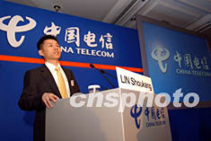 中國電信股份有限公司10月24日在香港舉行記者會,宣布25日起在香港招股計劃,紐約透過視像會議向全球發(fā)售一百六十八億股H股,預計集資額約為三十一億美元,為全亞洲今年最大公開招股項目。洪少葵 攝