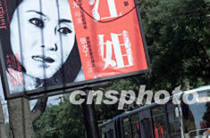 重新制作發(fā)行的電影《江姐》的廣告燈箱出現(xiàn)在秋日的北京街頭。該片被列入向中共十六大獻禮的影片之列。作者:滿會喬