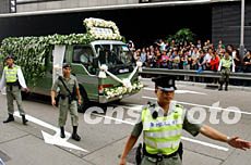 中新網(wǎng)10月30日電 一代巨星羅文29日出殯,儀式在下午1點舉行,數(shù)百位羅文生前至親好友,以及在殯儀館門外手持鮮花的歌迷,懷著沉痛而依依不舍的心情,陪伴一代歌圣走完最后一段旅程。