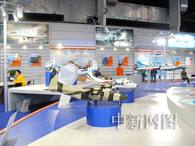 航空二集團展區(qū),中間是暢銷全球的運-12系列小型運輸機。