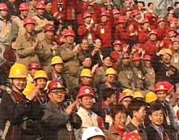 圖:現(xiàn)場工程人員慶賀上游圍堰合龍成功