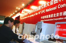 一名前來采訪中國共產(chǎn)黨第十六次全國代表大會的記者六日在北京梅地亞中心查閱中共十六大專題網(wǎng)站資料。即將召開的中國共產(chǎn)黨第十六次全國代表大會引起中外媒體的廣泛關注。作者:毛建軍