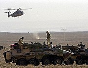 一直與美國(guó)亦步亦趨的英國(guó)今天也傳來消息,一旦解除薩達(dá)姆武裝的外交努力失敗,英國(guó)國(guó)防部決定,將調(diào)動(dòng)一萬五千名人的部隊(duì),開赴中東參加對(duì)伊地面作戰(zhàn)。