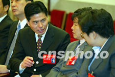 中國共產(chǎn)黨第十六次全國代表大會十日繼續(xù)舉行分組會,江蘇遠東集團董事長蔣錫培在江蘇代表團分組會上與代表一起討論十六大報告。作者:毛建軍