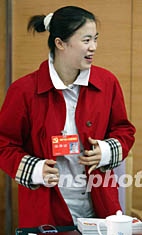 圖:乒乓球女子世界冠軍王楠出席中共十六大