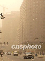 走在風(fēng)沙彌漫的沈陽(yáng)街頭,只見(jiàn)枯葉飛旋、塵土撲面,六百米以外便是混沌一片。許多騎自行車上班的人逆風(fēng)前行,紛紛棄車改乘出租車。街上稀少的行人也都用沙巾裹住了頭部。人在室內(nèi),只聽(tīng)窗外狂風(fēng)呼嘯之聲不絕于耳。