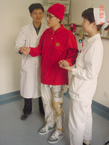 ——在生活自理方面邁進了第一步,繼一個多月前開始自己吃飯、翻身、起坐外,近日在醫(yī)護人員扶持下已能站立并短距離行走。
