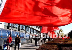 北京長安街十一月變成紅旗的海洋,以慶祝中共十六大選舉出新的中央委員會。作者:賈國榮