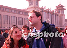 十一月十五日,新一屆中共中央政治局常委通過電視直播與民眾見面,一位北京女孩在北京站前向美國朋友介紹新當選的中共領導人。作者:張宇