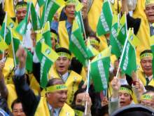 中新網(wǎng)11月18日電 臺灣數(shù)百名農(nóng)漁會代表今日下午前往農(nóng)訓(xùn)協(xié)會舉行“1123與農(nóng)共生團結(jié)大游行”誓師大會,并以行動表達對當(dāng)局以改革之名意圖“消滅”農(nóng)漁會的高度不滿,李登輝則到場呼吁農(nóng)漁民取消游行,不過全國農(nóng)漁會自救會強調(diào):“不管怎樣,游行照常舉行!”