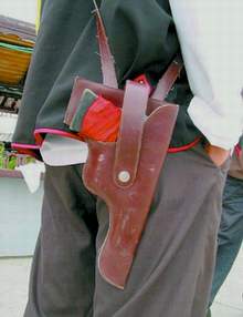 據(jù)信息時報報道,頭戴一頂禮帽,上穿絲綢馬夾,下穿寬大褲頭,屁股上還掛著一把木制“駁殼槍”,點(diǎn)頭哈腰,遇見客人無論男女均叫“大爺”,保安胳膊上還戴著一個寫有“廣州市治安協(xié)管員”的黃色袖章!@京是花都區(qū)云海閣酒樓10多名保安的形象。