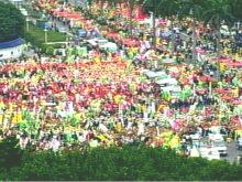 雖然有些縣市人數(shù)減少,但因地緣關(guān)系,北縣人數(shù)反而增加,從近午開始,中正紀(jì)念堂就開始人滿為患,從高處俯瞰,只見到黑壓壓一片,十分驚人。而國民黨主席連戰(zhàn)也在午后1時(shí),抵達(dá)現(xiàn)場向農(nóng)漁民“致意”。