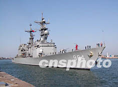 11月24日上午十時(shí),美國海軍“福斯特”號(hào)驅(qū)逐艦駛抵青島,開始對(duì)青島進(jìn)行為期五天的友好訪問。這是自去年中美撞機(jī)事件以來,美國軍艦首次訪問中國大陸。圖為即將?看a頭的美艦。作者:鄒山