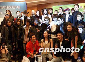發(fā)布會由吳大維、柯藍(lán)主持,歌手陳慧琳、孫楠、陳琳、滿江、解曉東、景岡山、老狼、林依輪、零點(diǎn)樂隊、達(dá)達(dá)樂隊、輪回樂隊、彝人制造、水木年華也前來助興。(中新社記者 鄭萍萍攝)